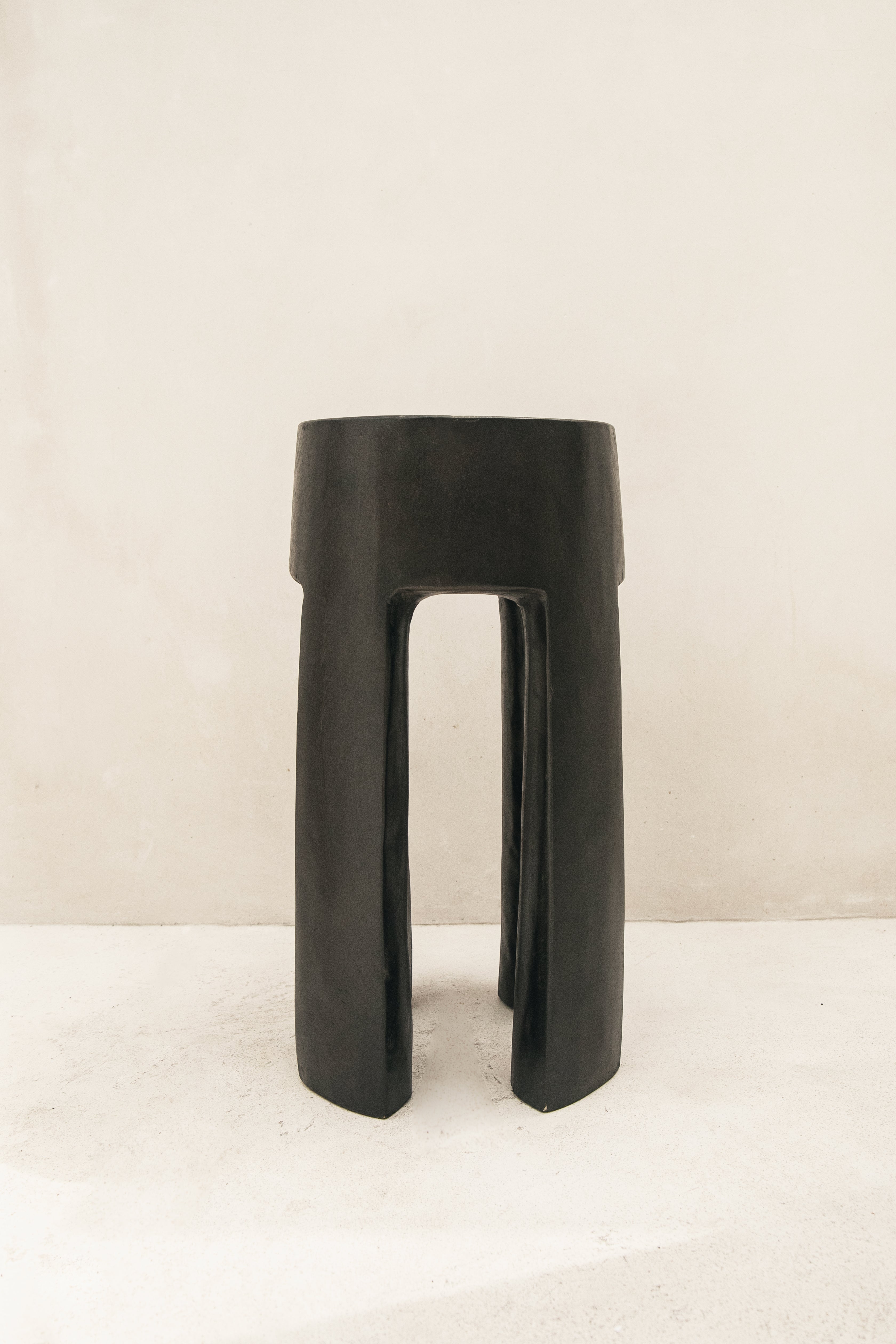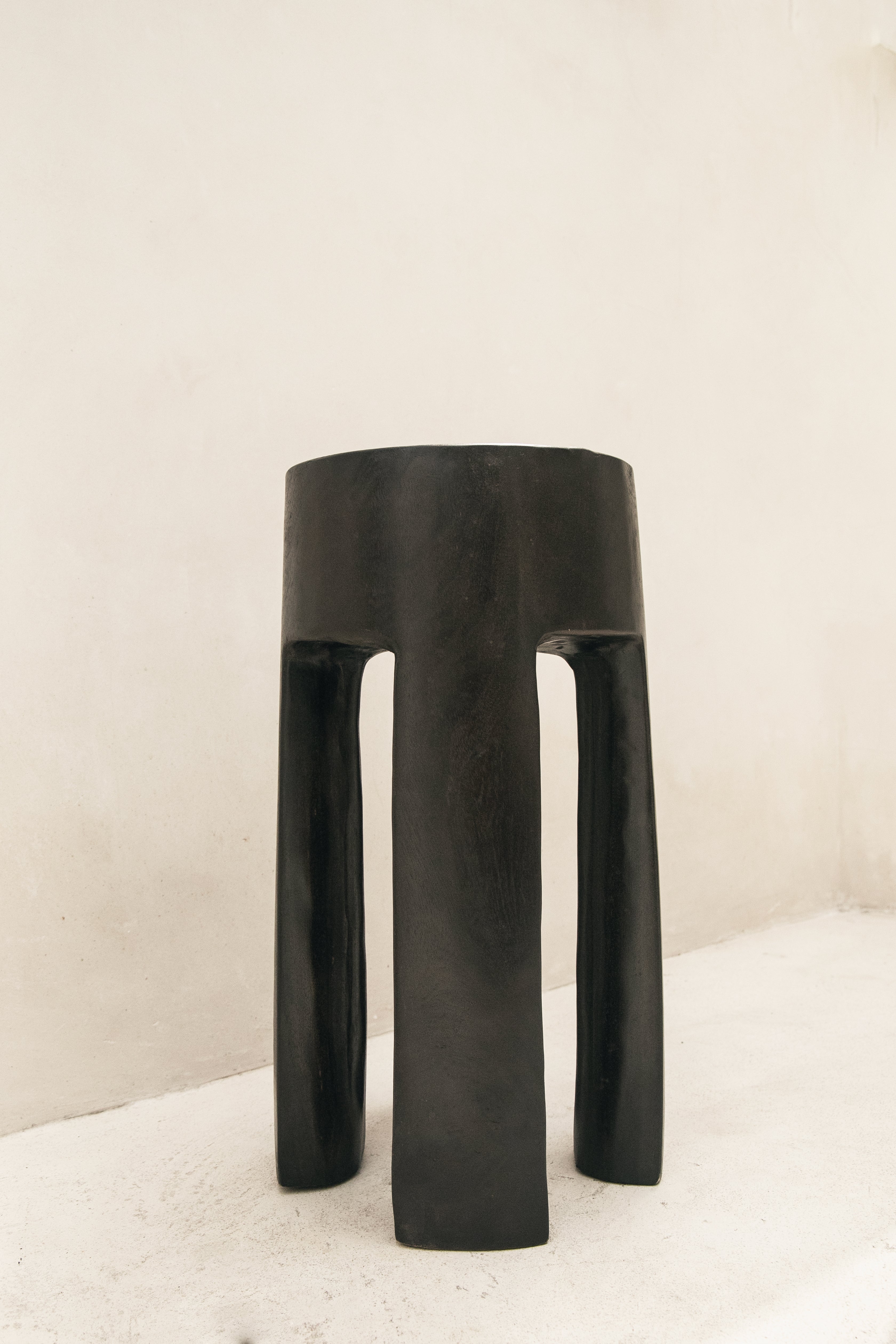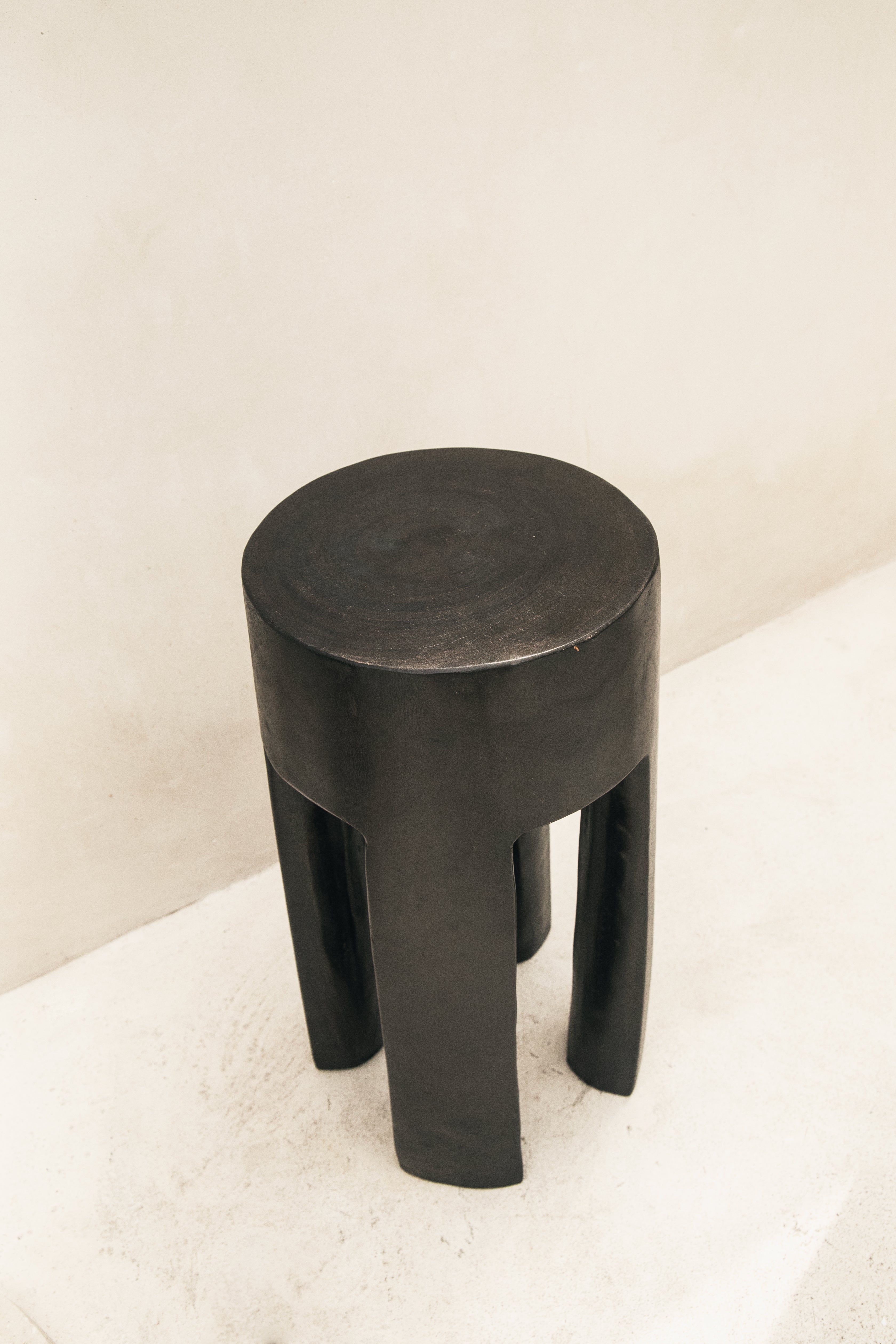 Each stool is individually carved and finished using a traditional fire-based blackening technique, inspired by the Japanese Shou Sugi Ban (Yakisugi) method. Through controlled charring, the surface of the suar wood is gently blackened, enhancing the natural grain while creating a rich, matte black finish. This process not only deepens the character of the wood but also adds durability and longevity to the piece.