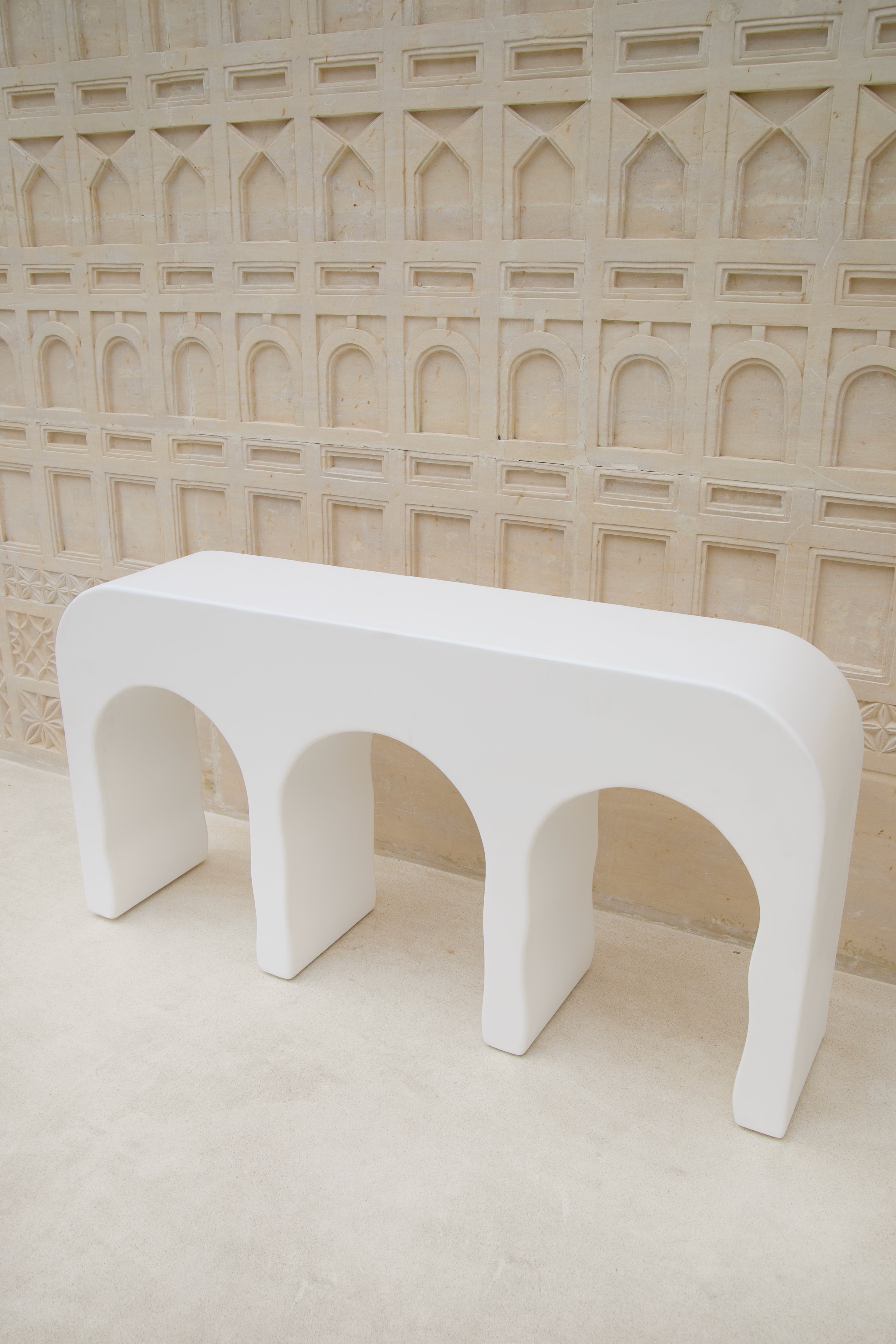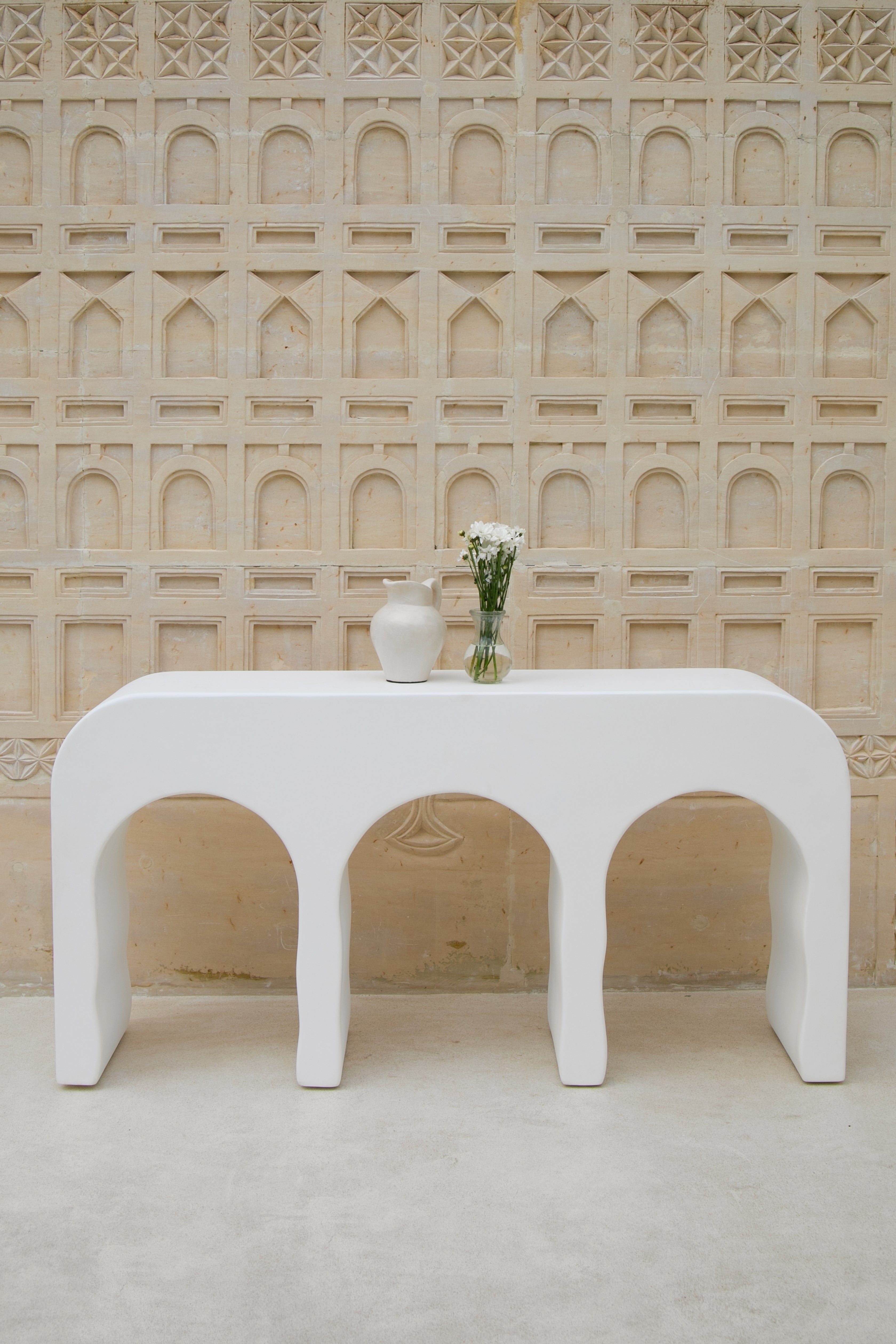 Sculptural and serene, the Santorini Archer Console captures the essence of Mediterranean architecture with its softly curved arches and organic silhouette.